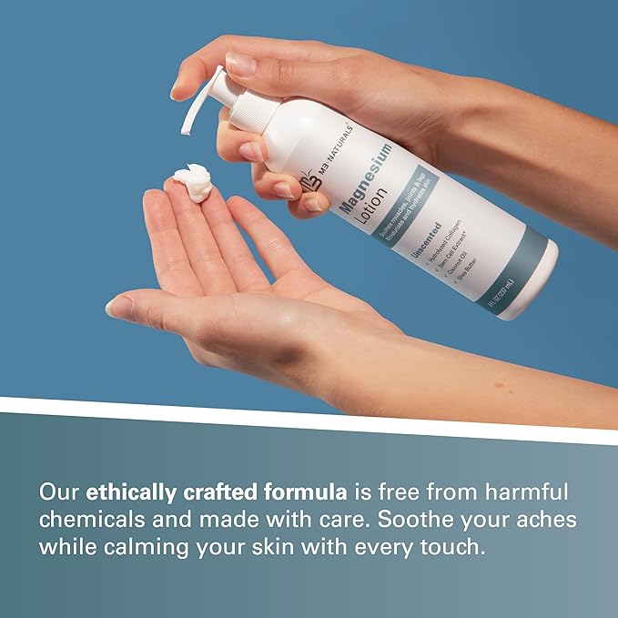 - Premium Ingredients: Formulated with Magnesium, Hydrolyzed Collagen, Stem Cell Extract, Coconut Oil, and Shea Butter for optimal skin health and relaxation. Our organic magnesium lotion and magnesium glycinate lotion are crafted for superior skin care.