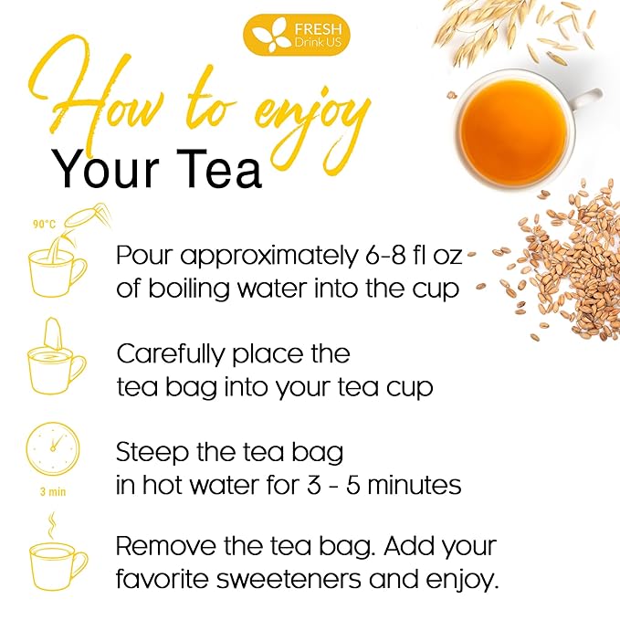 - ☘️ STEP TO ENJOY BARLEY LEAVES TEA BAG: Place 1 Barley tea bag into your favorite cup or mug. Add approximately 8 fl oz of hot water, and leave to steep for about 3-5 minutes. Savor it hot for a comforting and calming experience.