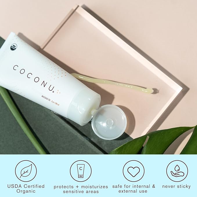 - No Worries, More Pleasure: Natural & organic ingredients, cruelty free, edible & hypoallergenic. Coconu’s massage oil is silky, long-lasting, oil designed to last without reapplication.