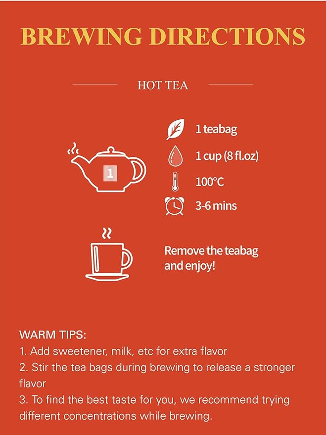 - [100 COUNT ECO-CONSCIOUS TEA BAGS] - Our premium tea bags are made from non-GMO plant fiber, and tea bags are compostable. No string and no tag. No extra waste - just healthy & delicious tea!