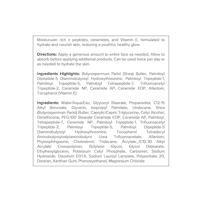 - Powerful, clinically proven ingredients: 5 Peptides, 3 Ceramides, Vitamin E, and Allantoin.