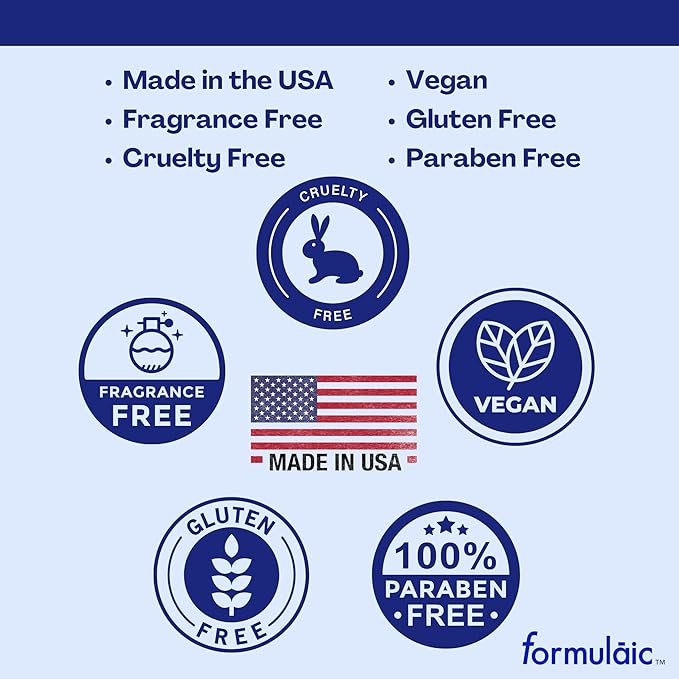 - Vegan, fragrance free, paraben free, cruelty free, and gluten free