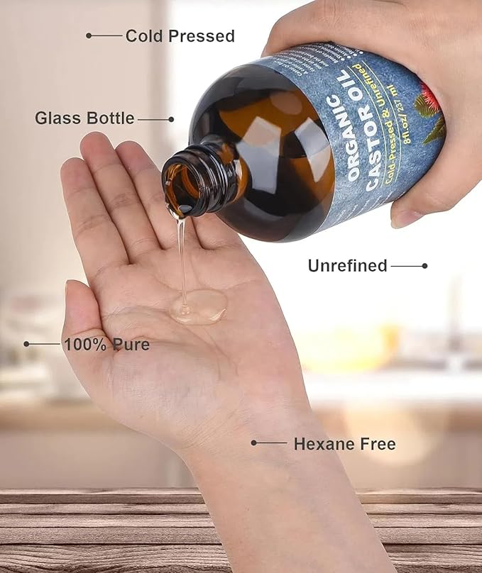 - 100% Pure & Natural - Experience pure indulgence with our organic castor oil, meticulously crafted solely from Ricinus Communis (Castor) Oil. Our organic castor oil cold pressed glass bottle is free from GMOs, additives, and Hexane, castor oil organic epitomizes natural goodness in every drop.