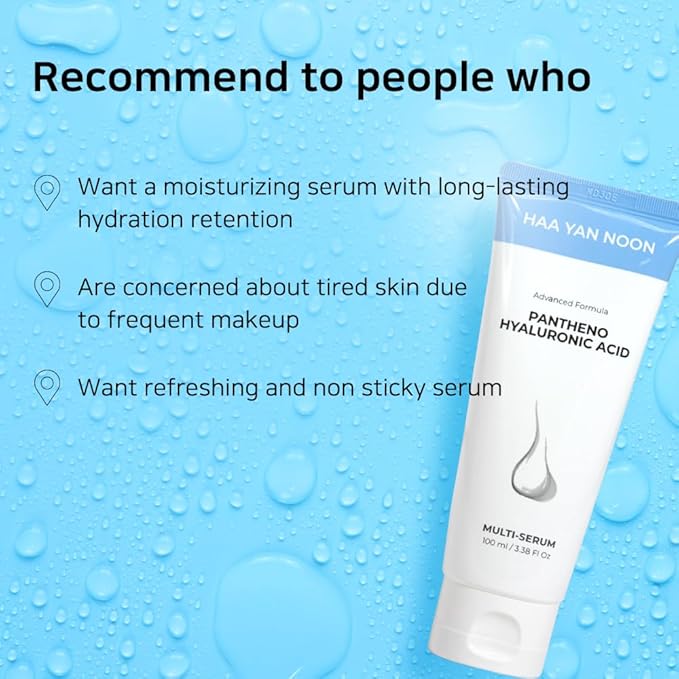 - INGREDIENTS HAA YAN NOON Hyaluronic Acid Multi Serum is formulated with 8 types of hyaluronic acid, Phanteol that help retain the skin’s natural moisture and soothe skin.
