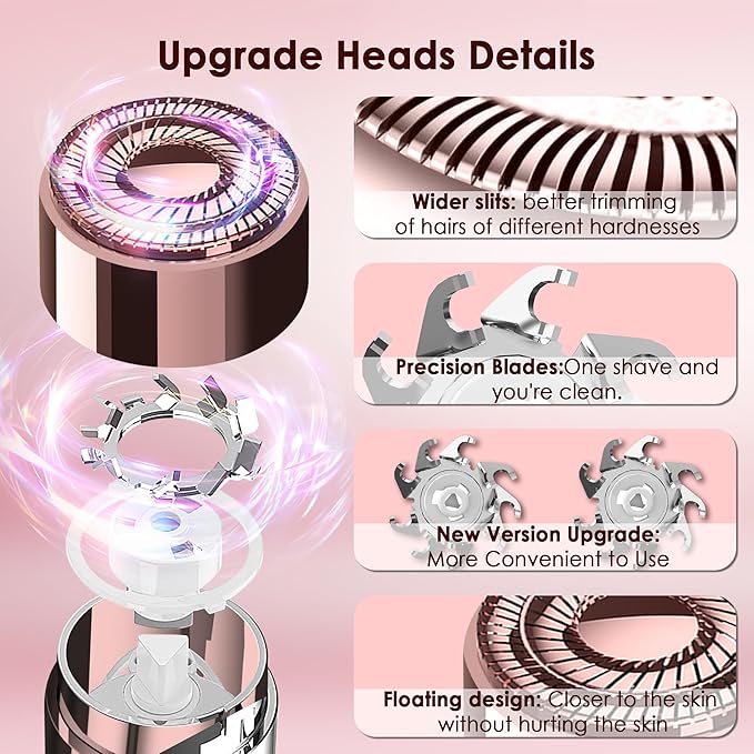 - 【Value Replacement Heads Sets】 This set with double halo replacement heads, 1 cleaning brush.value-for-money sets is enough to give you a long-lasting, high-quality shaving experience, you can continue to enjoy painless and smoother hair removal every day. Facial hair remover Replacement Heads For optimal performance, It is recommend replacing the hair remover replacement heads every 3-6 months