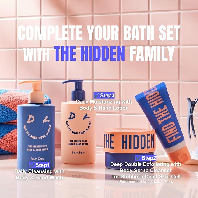 - π΅ The Hidden Silky Body & Hand Lotion | A pH-balanced, non-sticky, lightweight formula enriched with vitamins. Contains PHA, LHA, and premium Andes Silky Salt, which exfoliate stubborn dead skin cells while hydrating and nourishing your skin for a velvety texture.