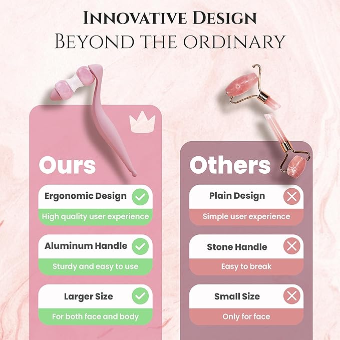 - Large Size: The largest facial roller in the market, twice larger size of a regular face roller, exclusively designed for the contours of the American user's face, fits the face better, especially the cheekbones and jawline contours, it ensures that skincare products are better absorbed and massaged into every inch of the skin, enhancing the lifting effect by more than 50%;