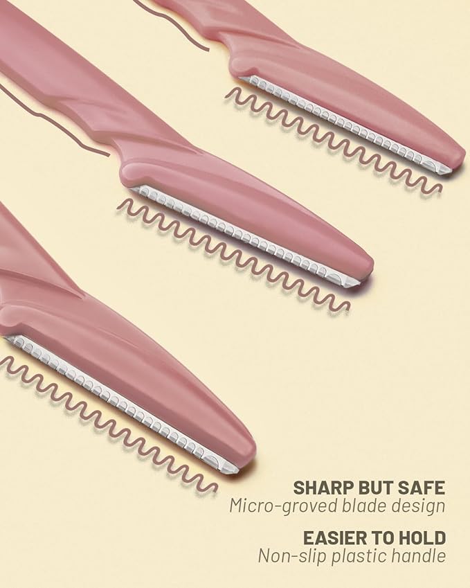 - DESIGN: non-slip plastic handle, precise protective cover and the cutting edge with areolae surface make dermaplaning razor for women face easy to use, sharp but gentle