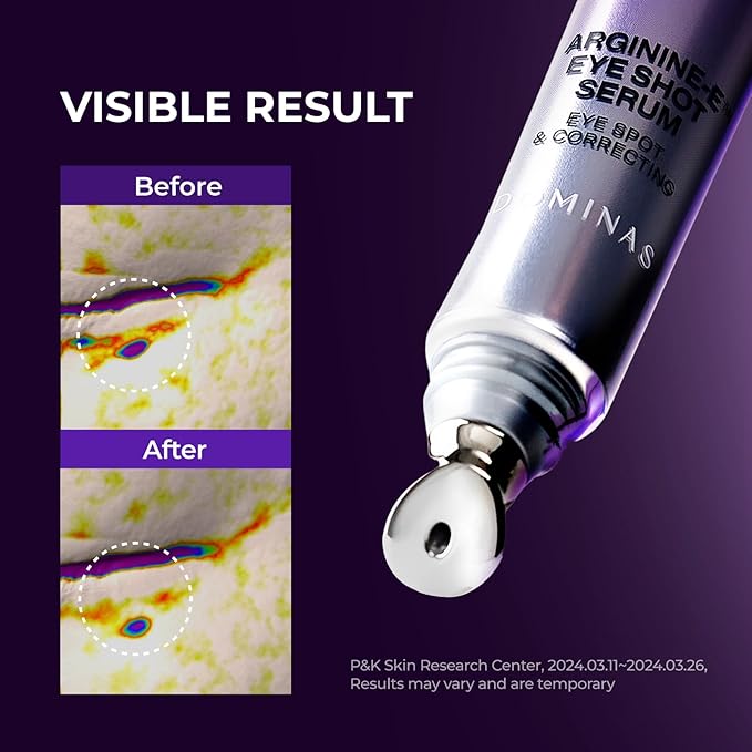 - DOMINAS ATCLINIC ARGININE-E EYE SHOT SERUM (0.67 fl oz) - This advanced eye serum addresses under-eye concerns such as discoloration, puffiness, fine lines, and uneven tone. Formulated with Arginine-E, Polydatin, and other powerful ingredients, it revitalizes and enhances the delicate skin around the eyes for a refreshed appearance.