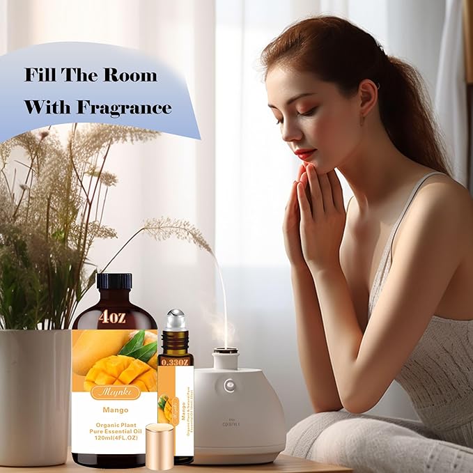 Mango Essential Oil - Mango Oil 4 Fl Oz & Roll On 10ML Essential Oil Set for Humidifier Home Fragrance Bath SPA Cleaning Massage Yoga Candle Making DIY Soap Perfume Gift for Women
