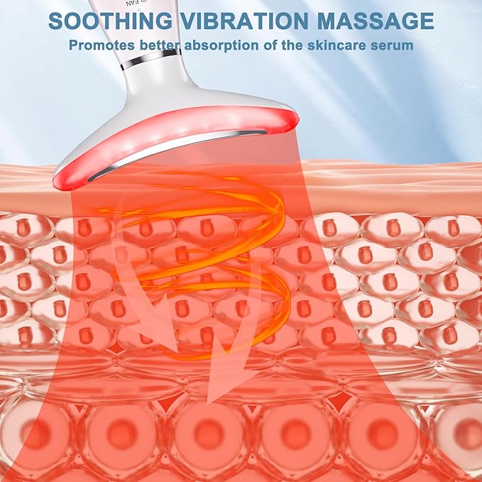 - 7-IN-1 Skin Care Tool:This face and neck massager comes with 7 different LED light modes and 3 massage modes for face and neck massages. Meet your diverse skincare needs