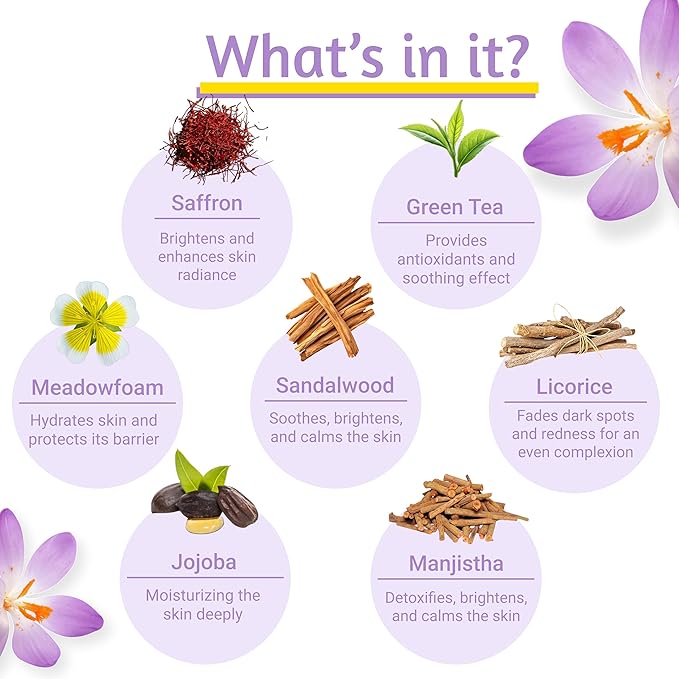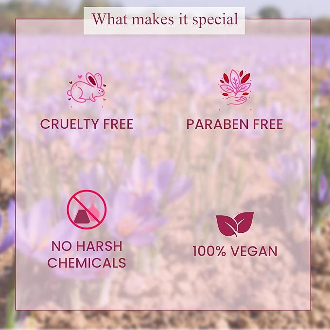 - Premium Saffron Extract: Infused with 100% natural saffron extract for a radiant glow and improved skin texture.