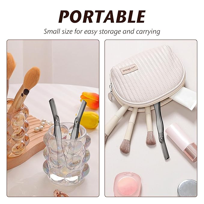 - 💕【Skin Safety Eyebrow Shaver】This facial razor features precision Japanese stainless steel microblade and an upgraded comfort metal handle that gently removes peach fuzz and exfoliating the skin. Our Dermaplane razor blades are designed with safety features that provide maximum blade contact area. The eyebrow trimmer's blade is designed with a clear protective sleeve that helps protect the skin from razor burns, nicks or cuts. You can put it in any bag without worrying about cuts.