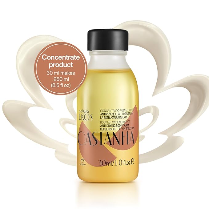 - NOT A MINI, NOT A REFILL: IT'S A CONCENTRATE! Transform Your Skincare Routine – Experience the power of Brazil nut oil with Natura Ekos Castanha Body Lotion Concentrate. This innovative kit includes a 30ml concentrate, allowing you to mix your own deeply hydrating body lotion while reducing plastic waste. BOTTLE NOT INCLUDED** See kit for bottle concentrate combo.