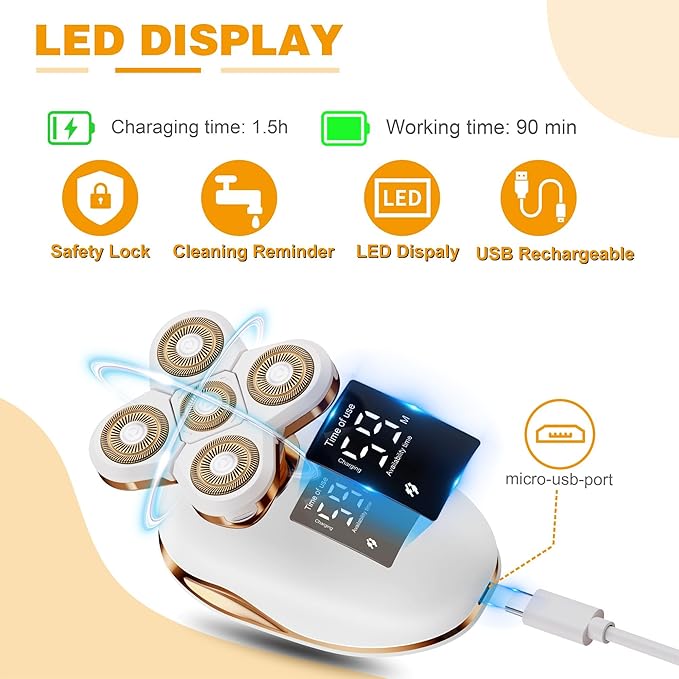 - 【Effortless & Painless Hair Removal】Experience seamless hair removal with our women's electric razor featuring 5D rotary floating head technology. The 360° design ensures quick, smooth results on the face, body, and bikini areas, leaving no residue behind