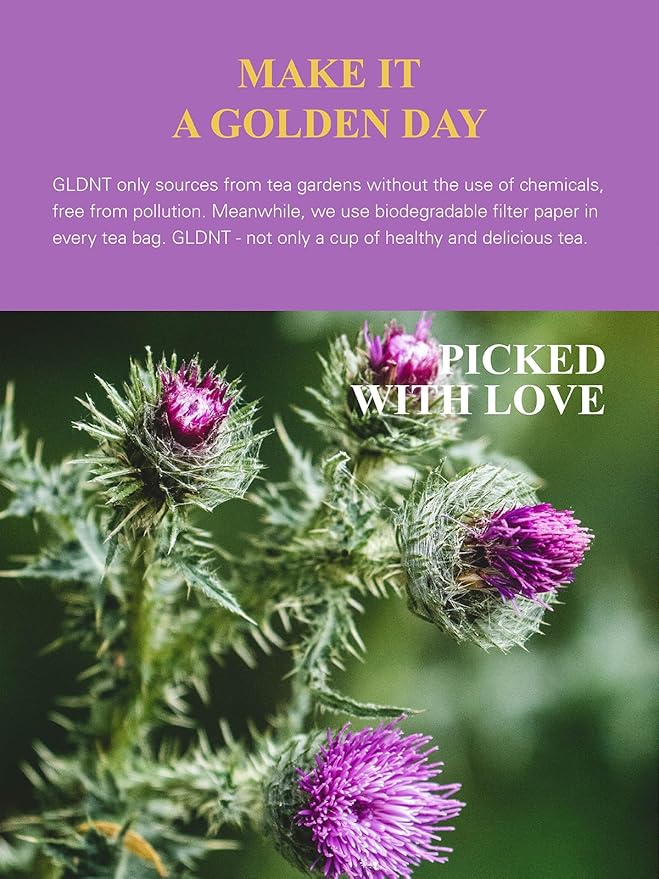 GLDNT Organic Milk Thistle Tea, Natural Organic Milk Thistle Seed Herbal Tea, Mild & Mellow Taste, Caffeine Free, 100 Count