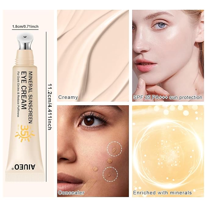Scarman Mineral Eye Cream, 3-in-1 Anti-Aging Eye Cream, SPF 35, Wrinkle Care, Filter Phone Skin-Damaging Blue Light for Dark Circle and Fine Lines, 15ML(#01 Light)