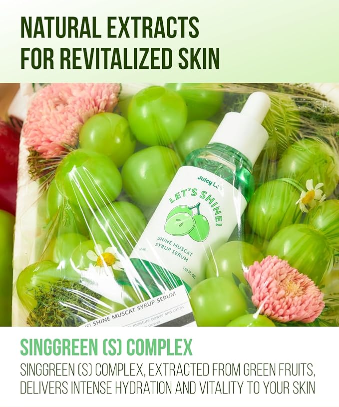 Let's Shine! Shine Muscat Syrup Serum 1.69 fl. oz(50ml) - Hydrating & Calming Face Serum with Hyaluronic Acid, Vitamin B5 & C, Perfect for Sensitive Skin, Fast Absorbing & Lightweight