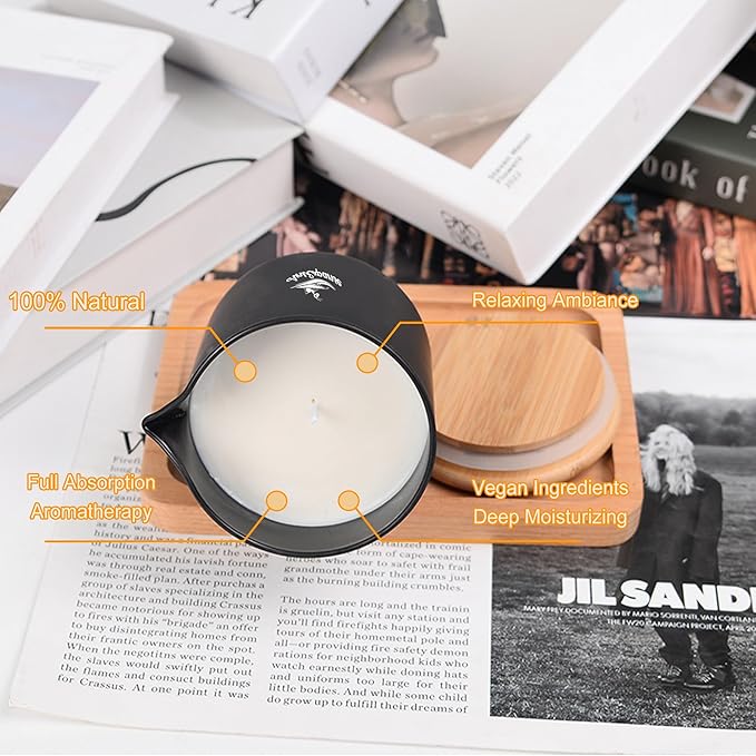 - [Aromatherapy & Relaxing Ambiance] Designed to calm your senses, our massage oil candle releases gentle, soothing aromas that create a relaxing atmosphere at home The warm candlelight and aromatic scents help reduce stress, balance your mood, and enhance your overall well-being