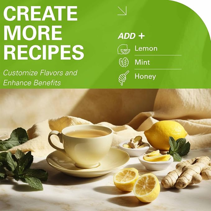 - 【Convenient & Easy to Use】Organic ginger green tea comes in tea bags, making it simple to brew in just minutes. No need to prepare fresh leaves—just steep the tea bag for a natural, soothing beverage