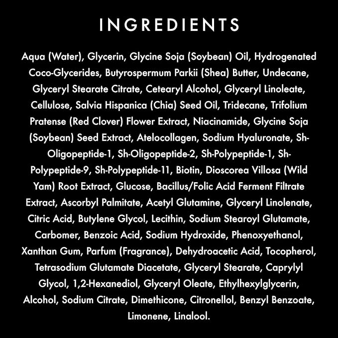 - Clinically Proven Ingredients: Formulated with Chia Seed Oil, Swiss Glacier Water and Neotec A15, a highly concentrated complex of Collagens and Hyaluronic Acid that intensely moisturizes, smooths the skin and provides it with new elasticity