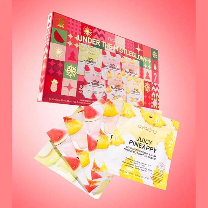 - This set contains: (1) Juicy Pineappy Exfoliating Mask This cooling, natural fiber sheet mask blends together skin-smoothers like Pineapple & Glycerin to keep skin soft, smooth & glowing - 1x 0.71 fl. oz. / 21 mL