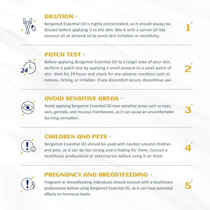 - [ 𝐌𝐮𝐥𝐭𝐢𝐩𝐮𝐫𝐩𝐨𝐬𝐞 𝐔𝐬𝐞 ] - Bergamot Essential Oil is versatile. Use in diffusers to eliminate odors and conduct aromatherapy. Use it for skin care, hair care and body massage after diluted with carrier oil (e.g. Sweet Almond, Jojoba or Castor Oil). It can also be used in DIY soaps, candles and sprays, adding bergamot scent for your masterpieces. There are more uses for you to explore