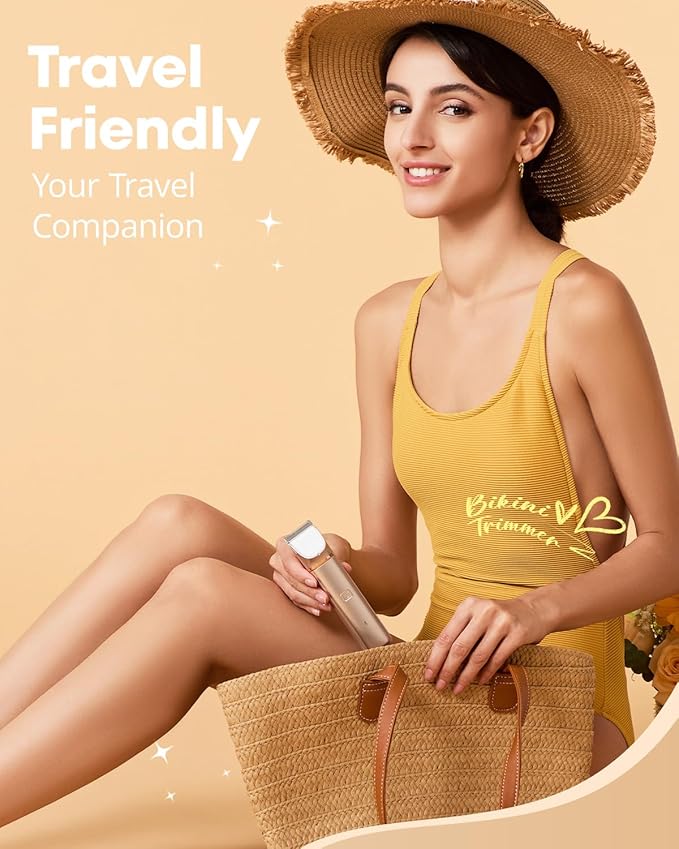 Electric Bikini Trimmer: 2 in1 Body Facial Hair Remover - Painless Pubic Hair Shaver (Rose Gold)