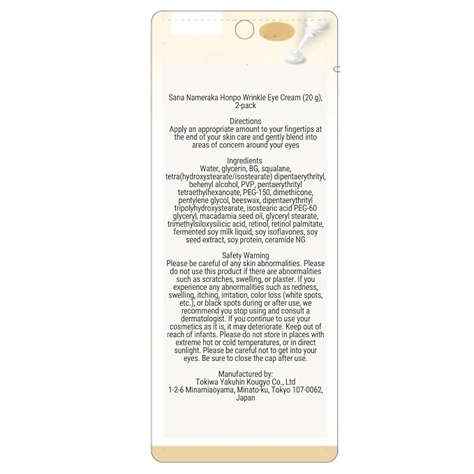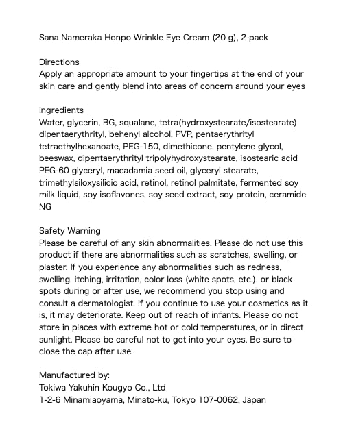 Sana Nameraka Honpo Soy Milk Isoflavone Wrinkle Eye Cream, 20g, Set of 2