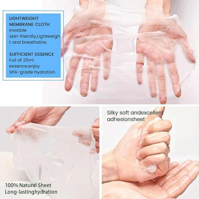 - FACIAL SKINCARE SHEET MASK:This premium women's skin care mask is silky smooth,moisturizing,refreshing and has increased efficacy and adhesion to block evaporation and lock in moisture for a hydrating effect that lasts all day