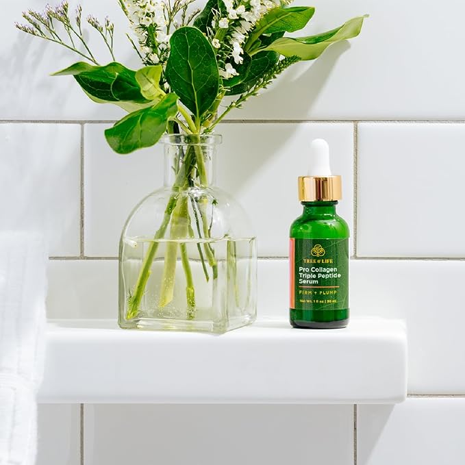 Tree of Life Beauty Hydrating Facial Serum Collagen Peptides with Argireline and Replexium - Anti Aging and Wrinkle Reduction (1oz) and Silicone Reusable Under Eye Patches for Puffy Eyes