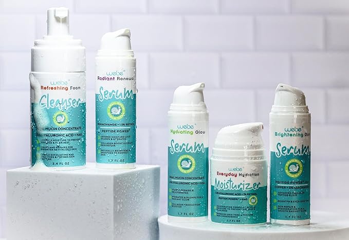 WEBE Brightening Duo Face Serum with Snail Mucin, Niacinamide, Copper Tripeptide-1, Hyaluronic Acid & Peptides – Hydrating, Brightening, and Firming Serum for Radiant Skin