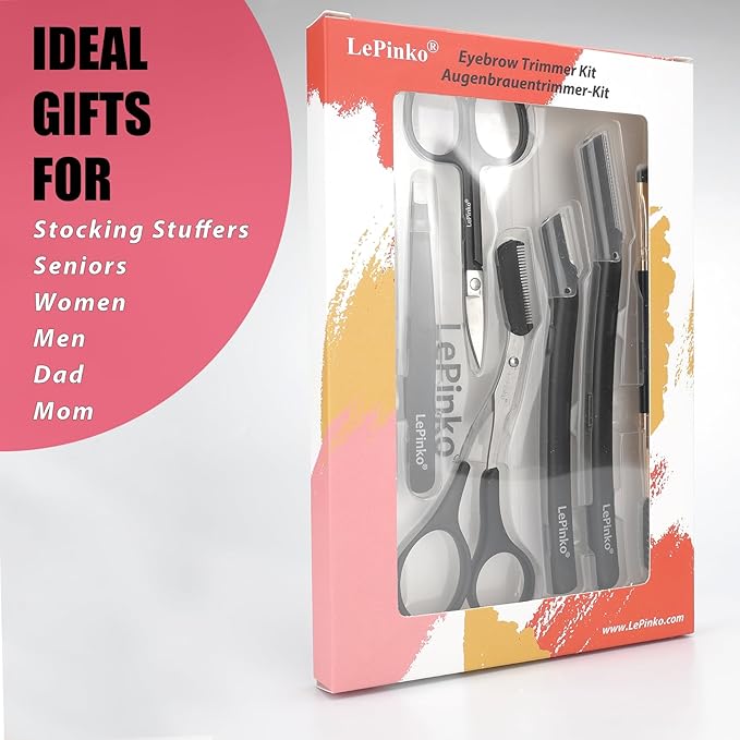 - Brow Shaping Kit - Come with 1 pair of eyebrow scissors with combs, 2 pairs of eyebrow tweezers (flat tweezers, slant tweezers), 2 eyebrow razors, 1 double-sided eyebrow brush, and 1 pair of facial grooming scissors. The must-have eyebrow kit and eyebrow grooming kit for men and women, great for shaping eyebrows, removing fine hairs and more.