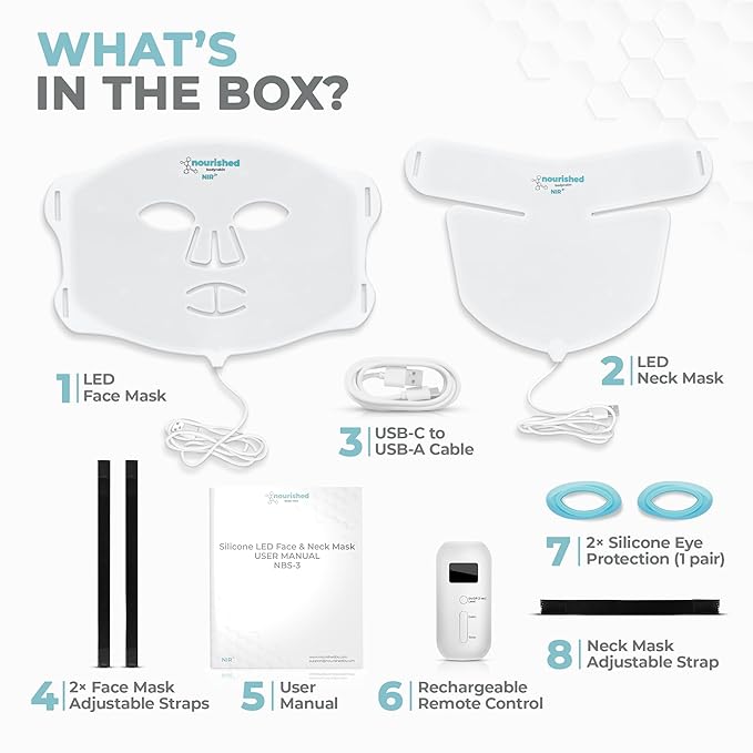 - 2-Mode Near-Infrared Light Therapy Mask Set: Offers Blue-plus-NIR and Red-plus-NIR for deep rejuvenation, with high-precision LEDs embedded in a medical-grade silicone base and 35 mW/cm² irradiance