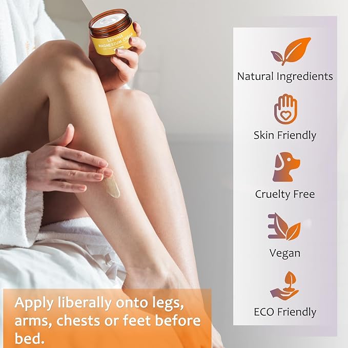 - Natural and Safe, Light and Non-Greasy: Made with carefully selected natural ingredients, magnesium lotion for leg cramps is gentle and safe for all skin types, This organic magnesium lotion has a lightweight, non-greasy texture that absorbs quickly into the skin. It won’t leave any sticky residue, making it ideal for use anytime