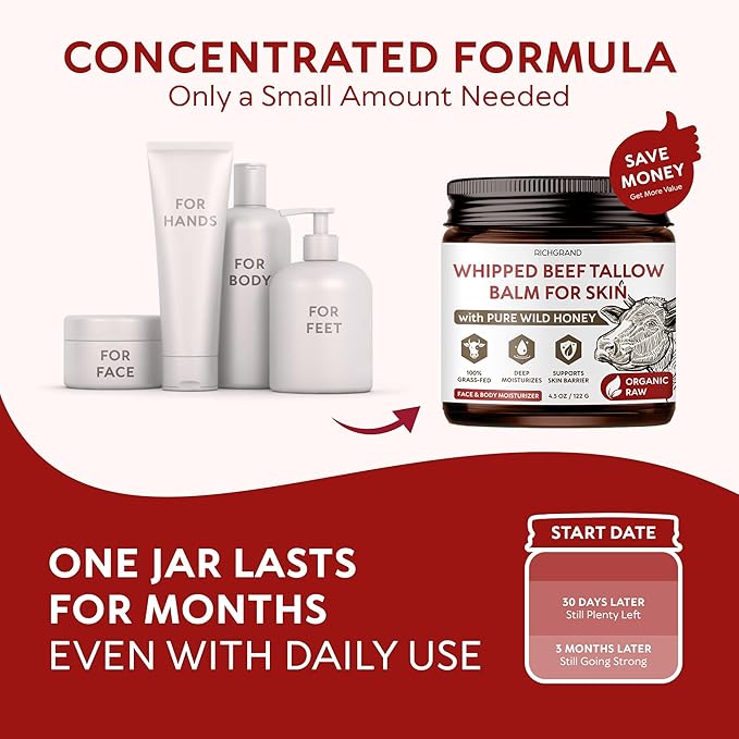 - Nutrient-Rich Synergy: Powered by grass-fed tallow, wild honey, and beeswax, it locks in moisture, restores skin’s barrier, and promotes natural collagen production