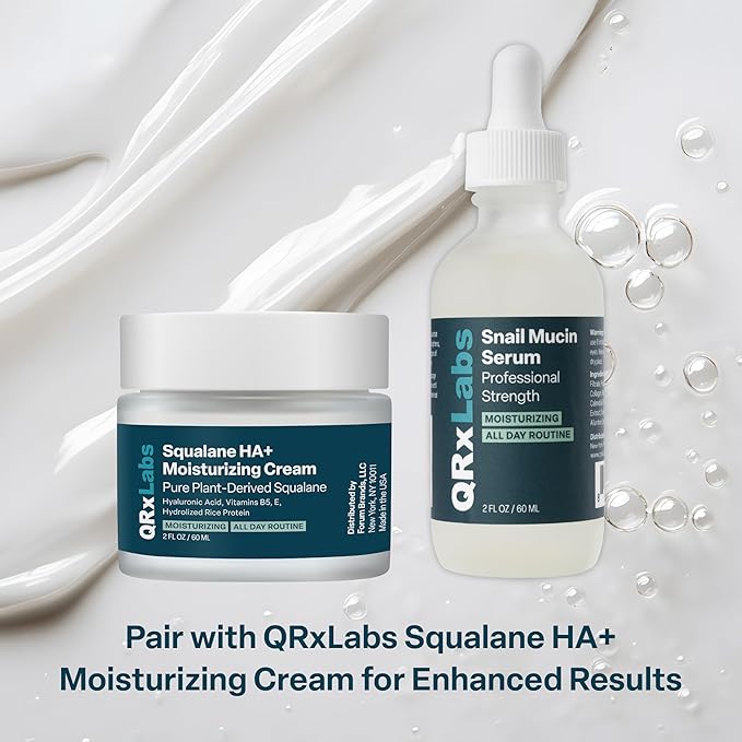 QRxLabs Snail Mucin Serum – Hydrates, Plumps & Brightens – With Collagen for Firm, Radiant Skin – Gently Exfoliates for a Smooth Glow – 2 oz