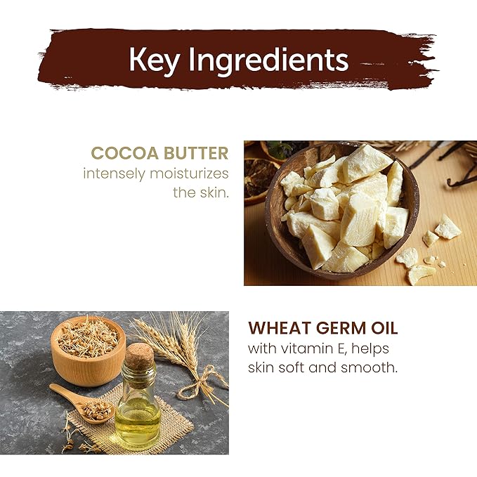 - ENRICHED WITH COCOA BUTTER: Cocoa Butter's deep-penetrating, herbal ingredients help repair and nourish skin as well as making it supple.
