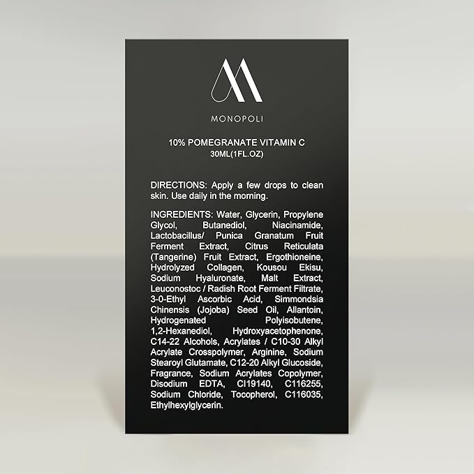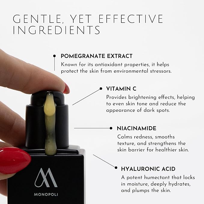 Monopoli Skin Pomegranate 10% Vitamin C Facial Serum | Boost Skin Hydration & Vitality | Fermented Pomegranate for Deep Penetration | Great for Women and Teens | Single 30ml