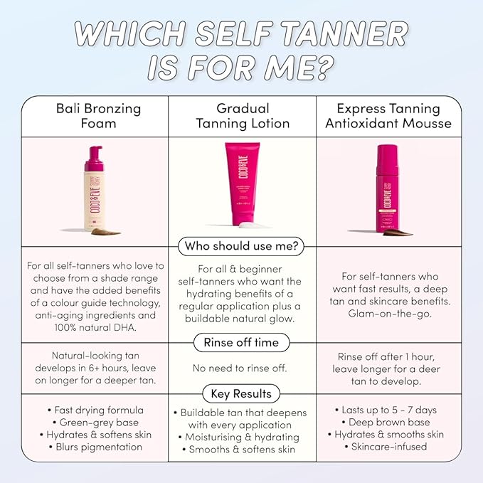 - Product Benefits : Natural-looking, Streak-free Tan, Moisturizing, Smoothing