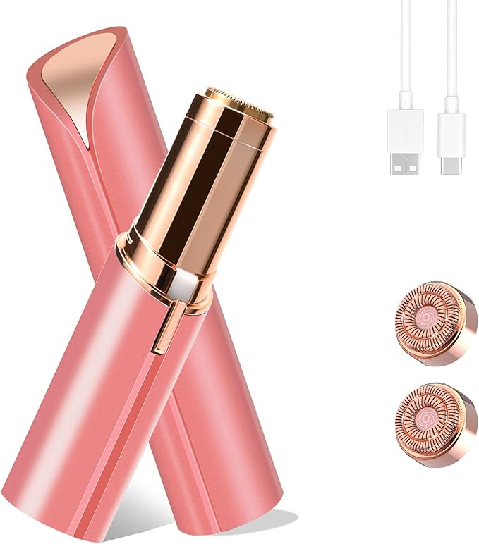 Facial Hair Removal for Women, Portable Painless Hair Remover Device, Rechargeable, with 2 Replacement Heads, for Face, Upper Lip and Chin (Rose god)