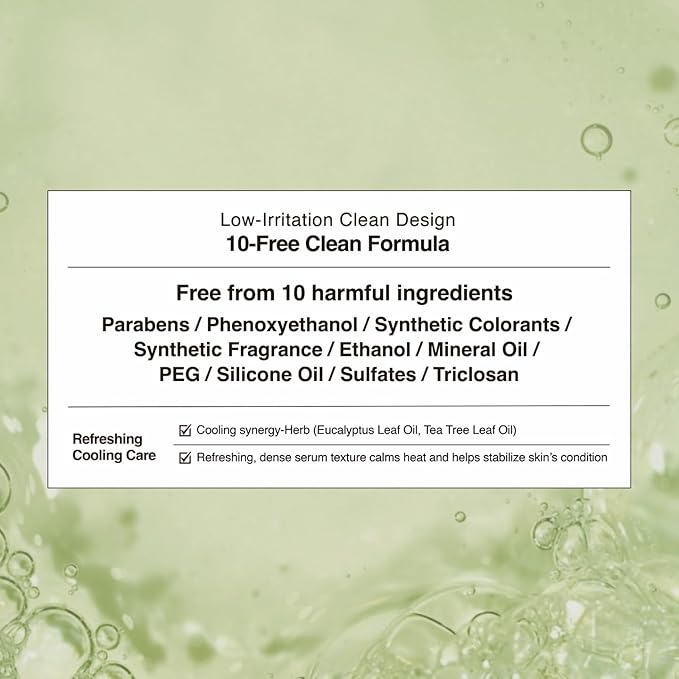 - LIGHTWEIGHT GREEN SERUM INFUSED WITH HOUTTUYNIA CORDATA: Experience gentle, refreshing care with this lightweight green serum powered by Houttuynia Cordata and Centella Asiatica. Perfect as your first step after cleansing to soothe and hydrate skin without heaviness or residue.