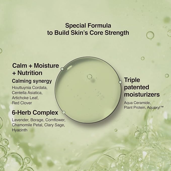 - BOTANICAL HYDRATION WITH HERB + MOISTURE COMPLEX: Combines a calming botanical blend—lavender, cornflower, borage, chamomile, sage, and hyacinth—with Aqua Ceramide and plant-derived moisturizers. Supports a healthy-looking skin barrier and visibly smoother texture.