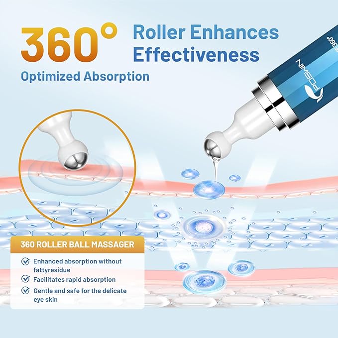 - 3D Cooling Caffeine Eye Serum: Our Under Eye Serum features an exclusive stainless steel roller ball for a cooling sensation, facilitates better absorption of the eye serum into the skin from all angles, and gentle massaging action promotes blood circulation in the delicate eye area.