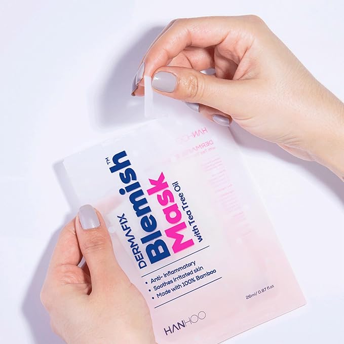 HANHOO Blemish Mask – 5 Pack Facial Sheet Masks with Tea Tree, Centella & Hyaluronic Acid, Refreshing & Hydrating Skincare, Lightweight & Soothing Korean Beauty Mask