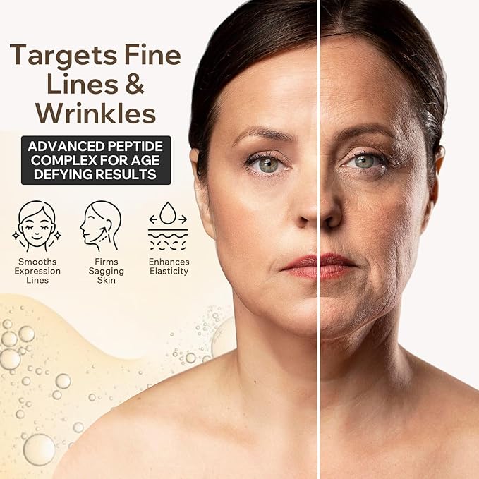 - Smooth & Firm Skin: Experience firmer, smoother skin with this wrinkle serum for face. Infused with anti-wrinkle firming serum, it improves elasticity, while the peptides serum for the face refines your skin’s texture. Perfect for those seeking to minimize fine lines and rejuvenate their skin with natural, firming results.