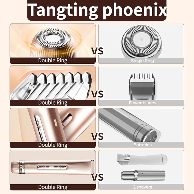 - ✨ Painless Hair Removal Without Pulling or Snagging: Dual-blade design with ceramic edges and protective mesh eliminates hair without tugging or causing redness. Enjoy smooth results without discomfort or bumps.