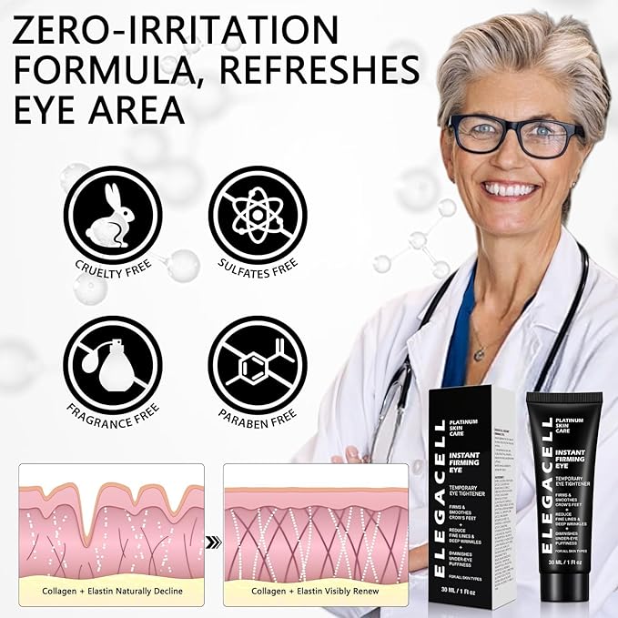 Elegacell Temporary Eye Tightener Cream Instant Firm Eye - Smooth the Look of Fine Lines, 1 Fl oz / 30ml